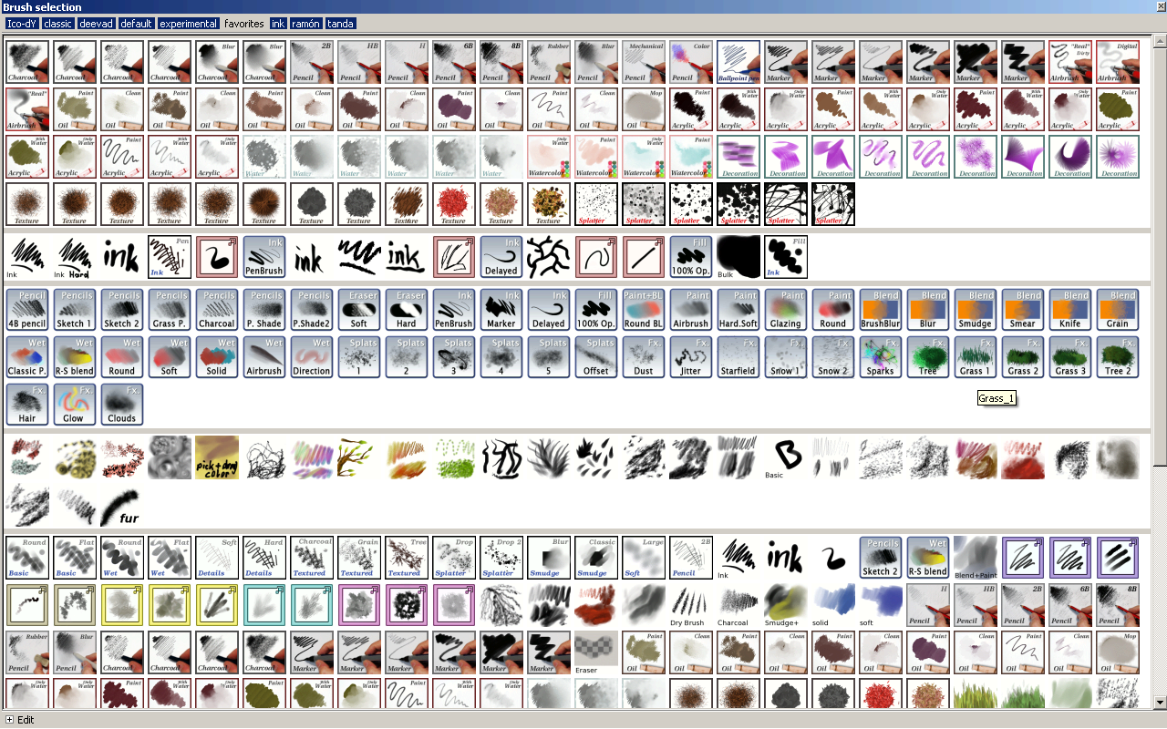 Видно, что даже на широкоформатном 17’’ мониторе не видно всех кистей – их на самом деле так много, так что простор для творчества огромен.